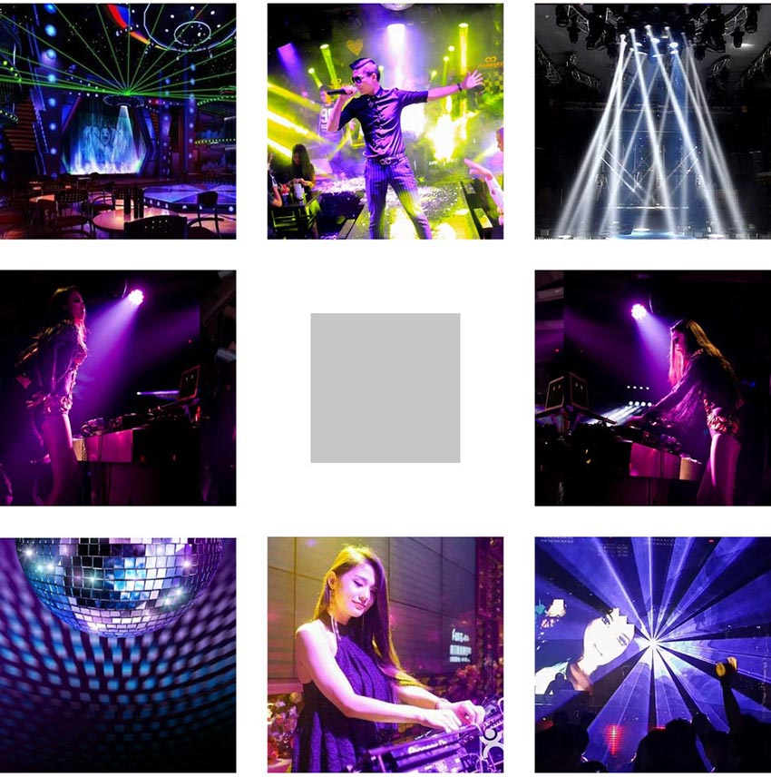 群体表演、大面积的照明由基本白光灯解决。酒吧设计局部照明、主持人的照明用追光灯解决,所以最好配2至3台的追光灯,应付不同的场合使用。车队或其他比较固定的表演者,可用束射灯定点投光。